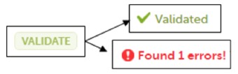 - In the top left corner of the design page, there is an icon that says "Validate". This is used to have the system go through the settings to find inconsistencies and errors in the study design. E.g. duplicate ID:s, edit checks that don’t compute due to incorrect ID:s or syntax, etc.